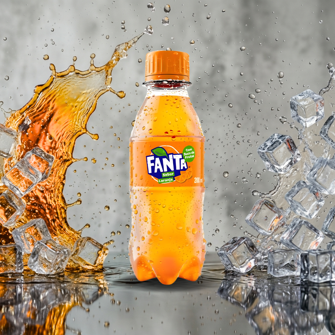 O sabor intenso e refrescante da Fanta Laranja na medida exata – Garrafa mini de 200ml para o toque de cor e alegria que o seu dia merece.