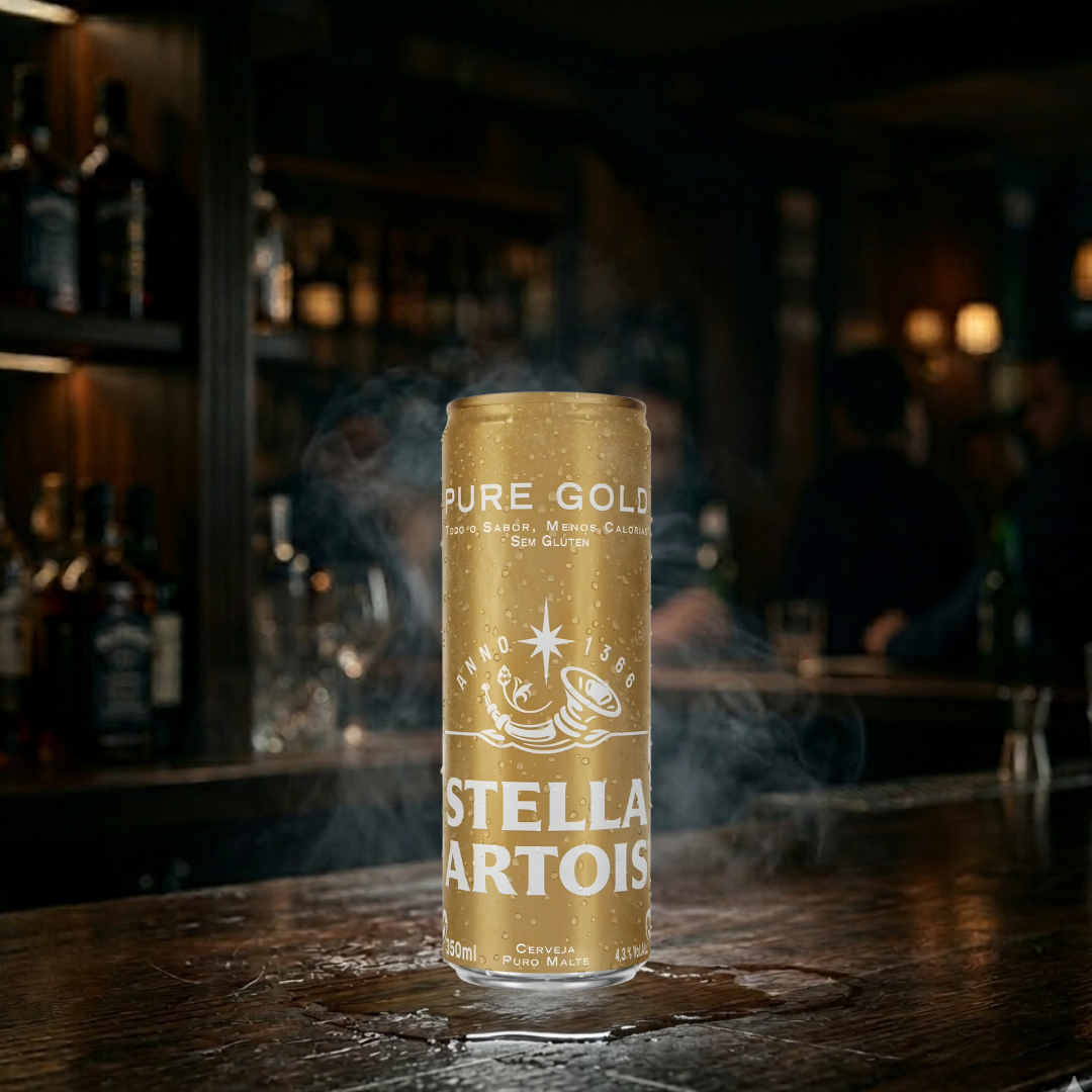 Leveza e praticidade em 350ml – A versão Pure Gold sem glúten na lata tradicional, perfeita para resfriamento rápido e momentos de descontração com consciência e sabor.