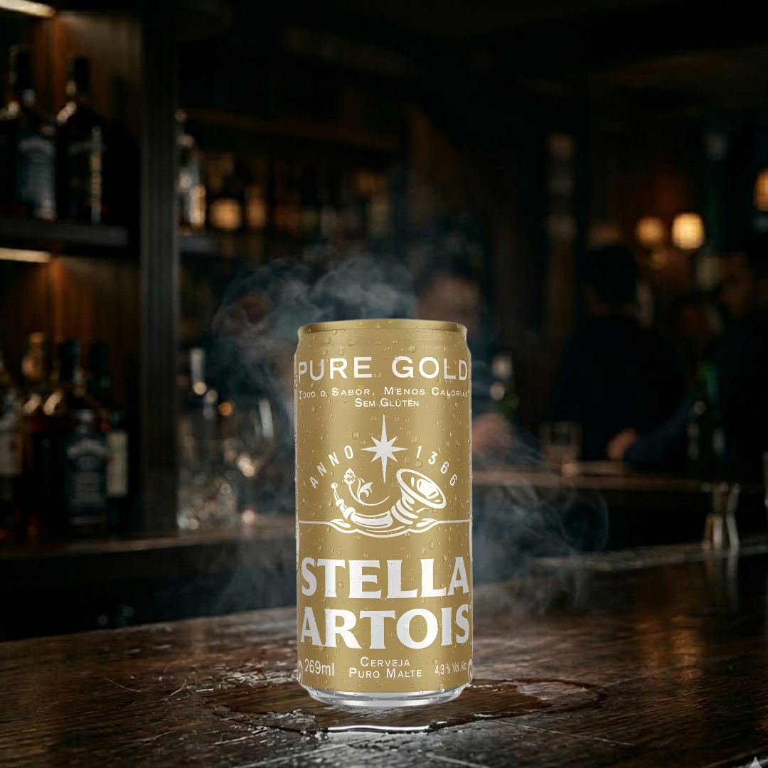A dose perfeita de sofisticação e leveza – A Stella Pure Gold 269ml gela instantaneamente e mantém o frescor ideal do início ao fim. 0% Glúten e 100% sabor Premium.